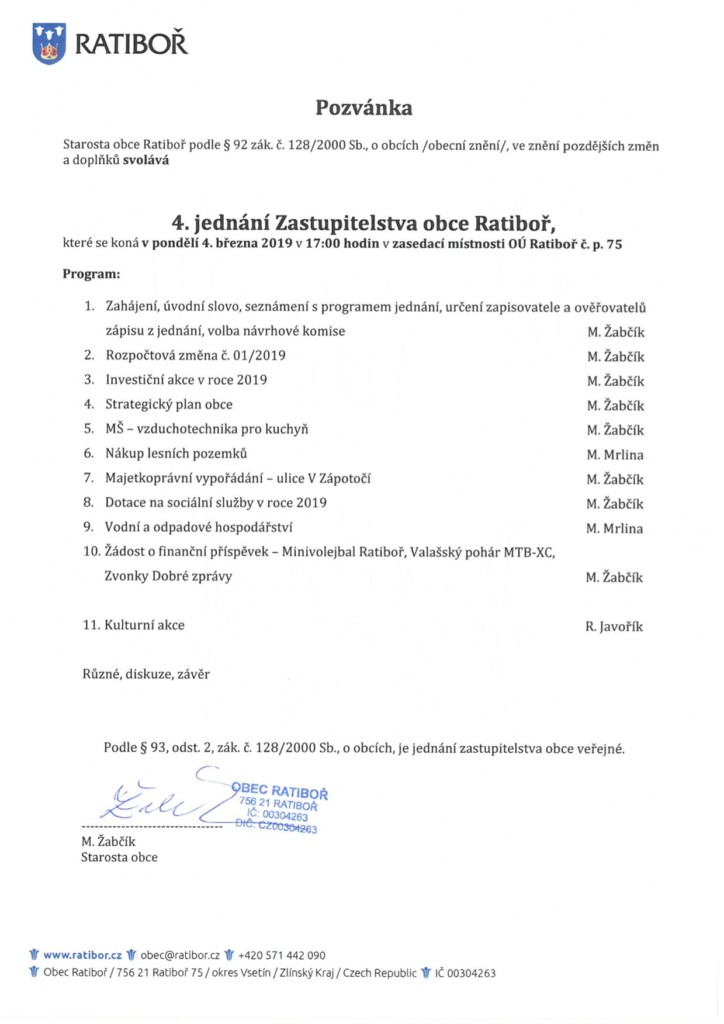 se konalo 4. března 2019 v zasedací místnosti OÚ Ratiboř