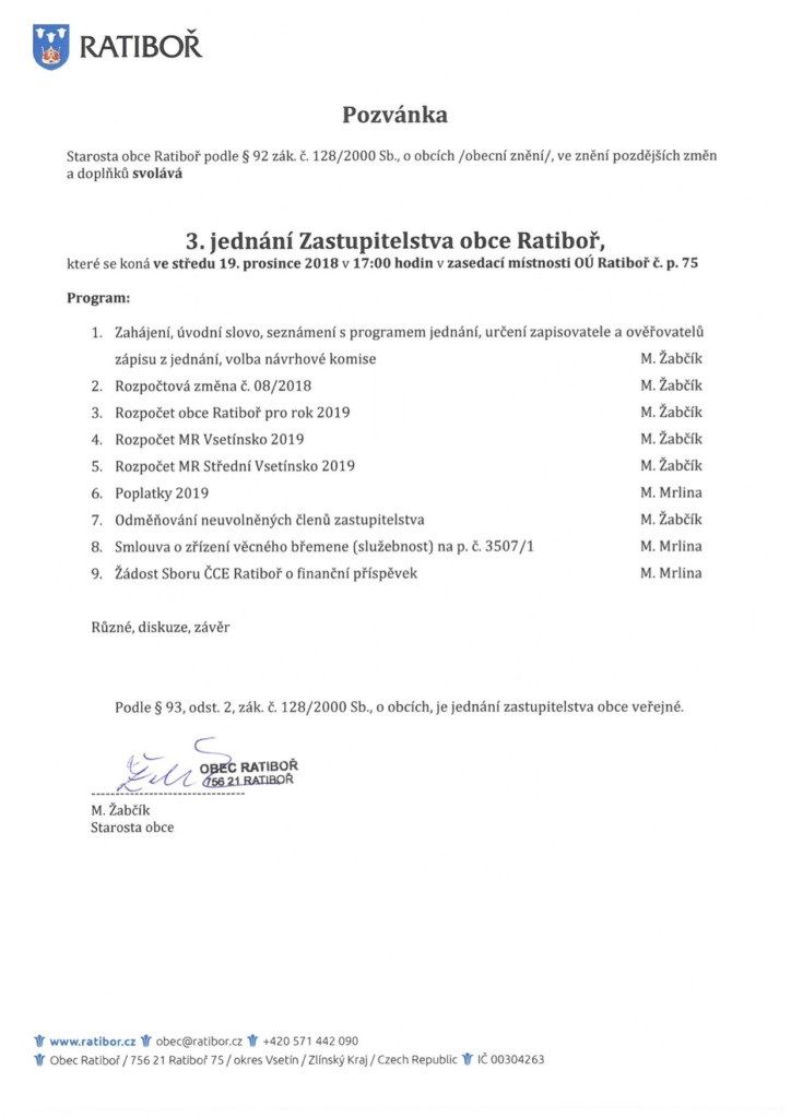se konalo 19. prosince 2018 v zasedací místnosti OÚ Ratiboř