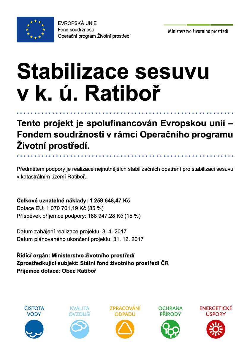 Projekt STABILIZACE SESUVU V K. Ú. RATIBOŘ je spolufinancován Evropskou unií – Fondem soudržnosti v rámci Operačního programu Životní prostředí.